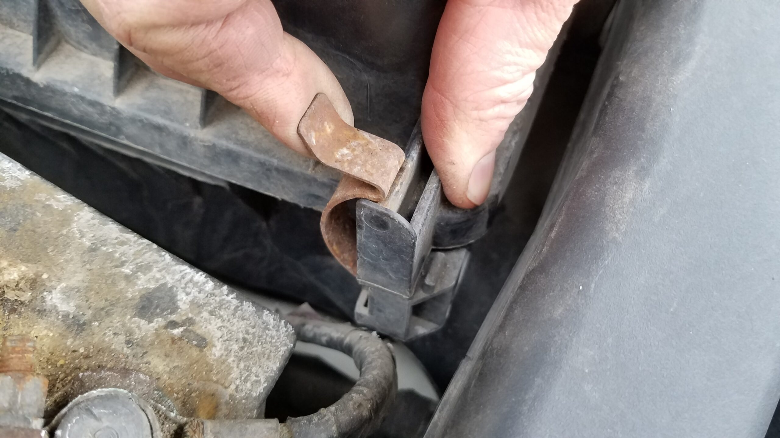 Now that the filter housing is in place, you can clip the front clips closed again.