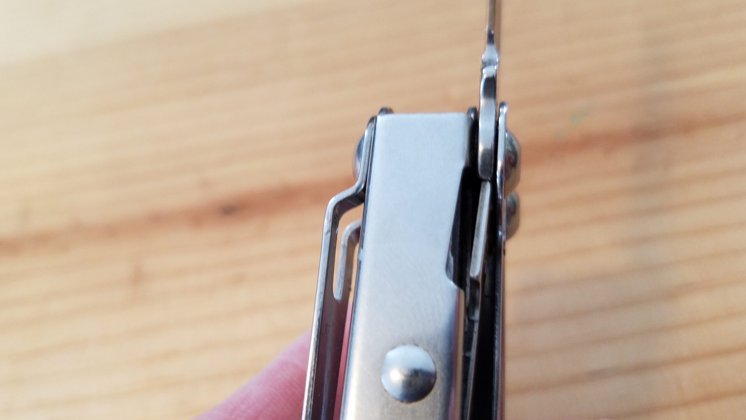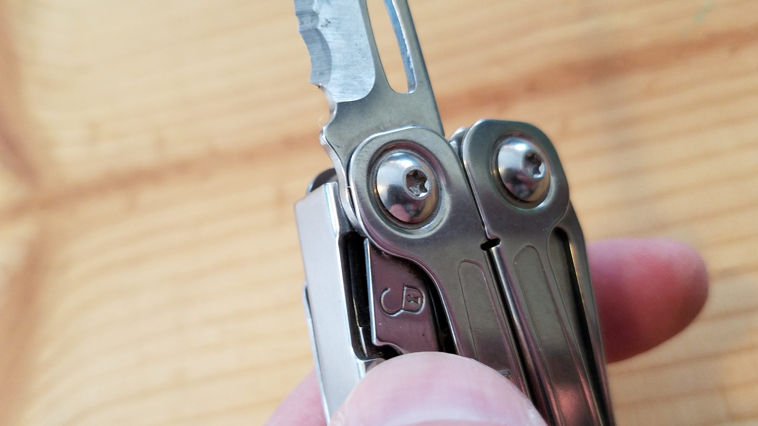 The knife on the Wingman is a ‘blade out’ design, meaning that the blade folds out from the outside, so you don’t have to unfold the tool in order to access the blade. I appreciate this feature, since the knife is by far the most commonly used of the tools (followed closely by the pliers or screwdriver, in my experience).
