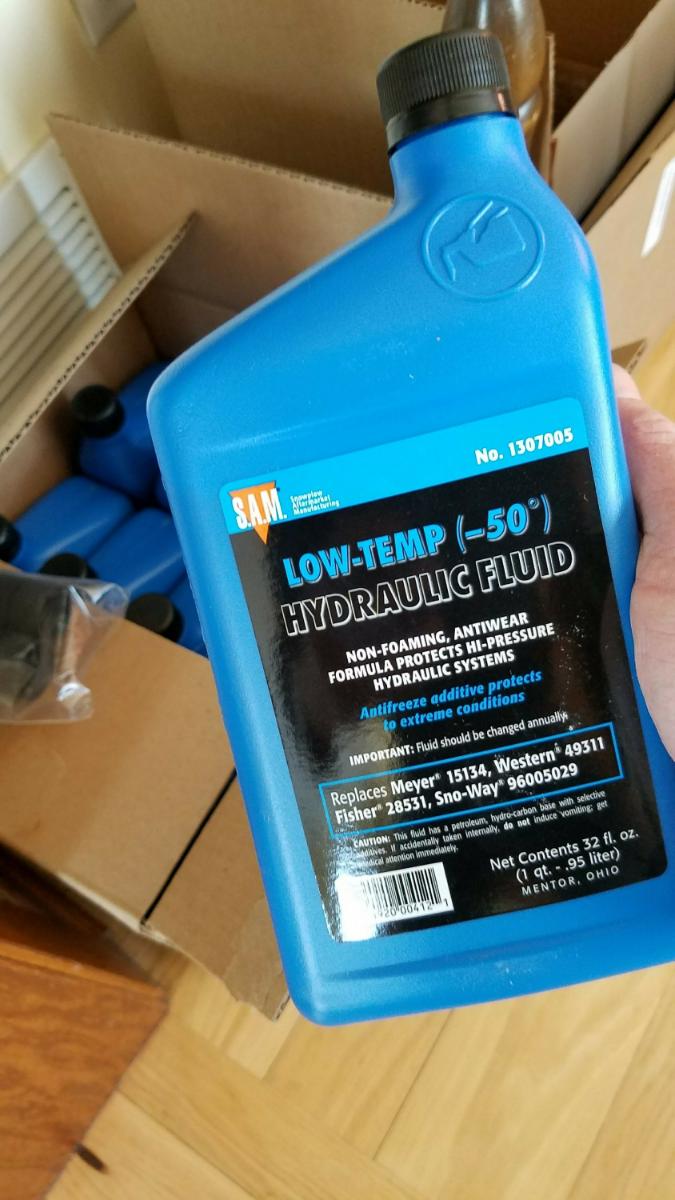 Part of the reason for the less than desirable performance was due to contaminated hydraulic fluid. The existing red fluid was purchased with the plow several years ago, and had not been changed since then. Also, the reservoir had been inadvertently topped off with power steering fluid at one point.