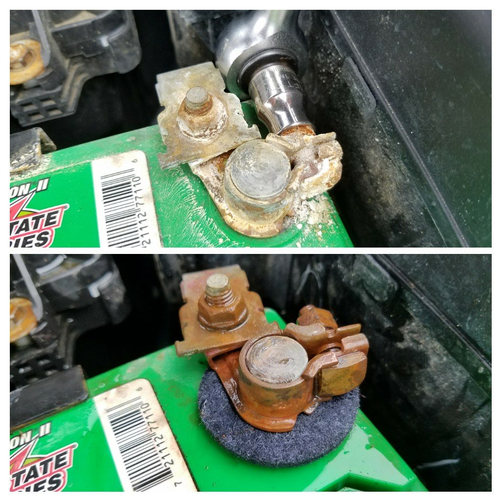 Make sure to get both battery terminal clamps, the battery terminals, and anywhere else where corrosion has built up.