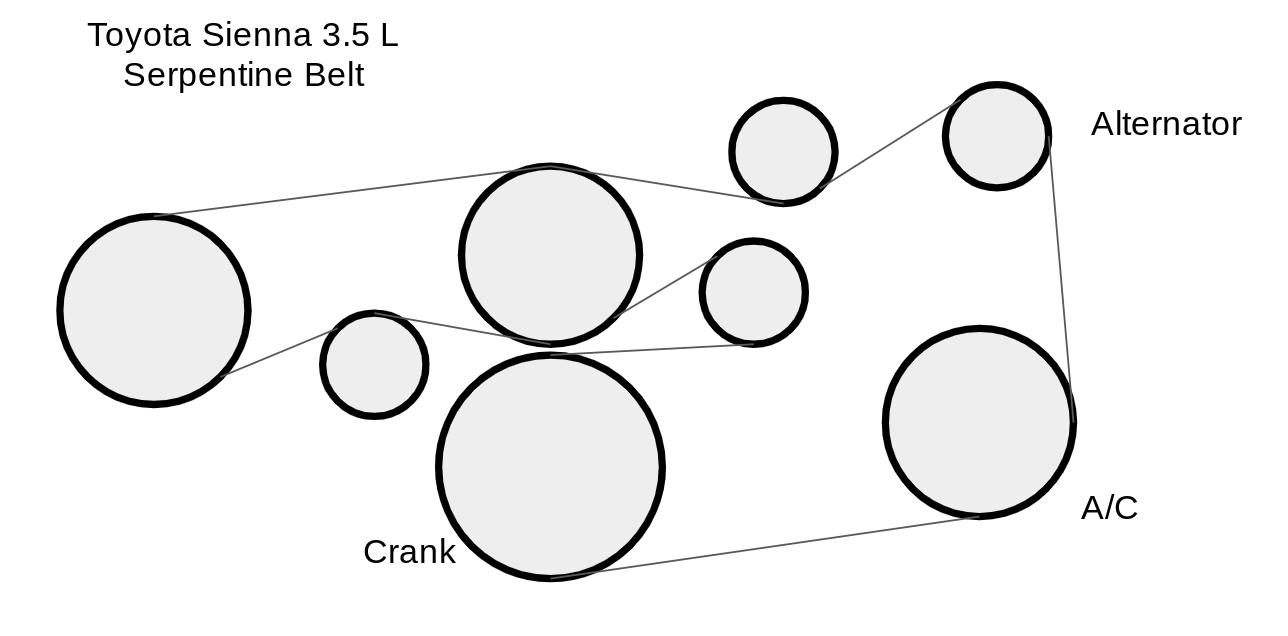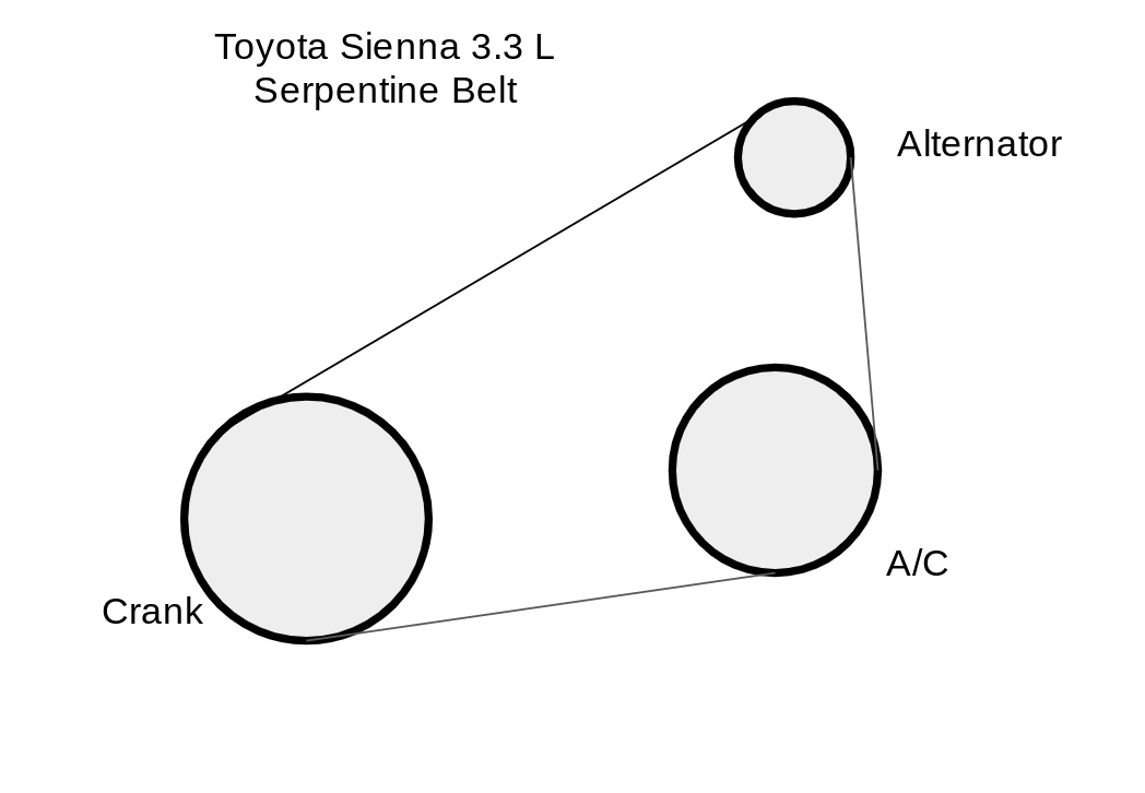 Here is a diagram of the belt path for this 3.3L Sienna (top) vs. the 3.5L (bottom):
