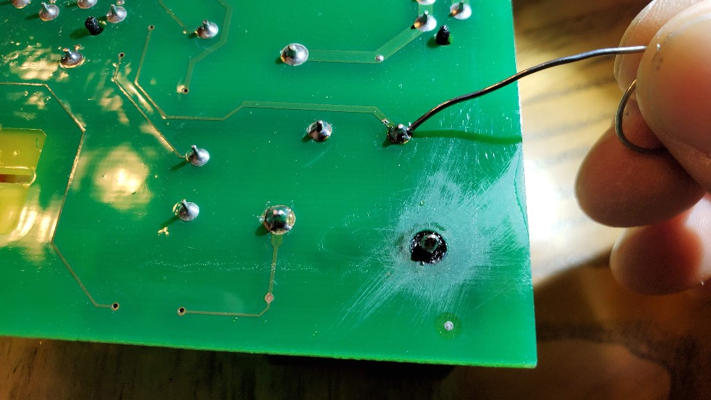 On the back of the board is a burnt pin.