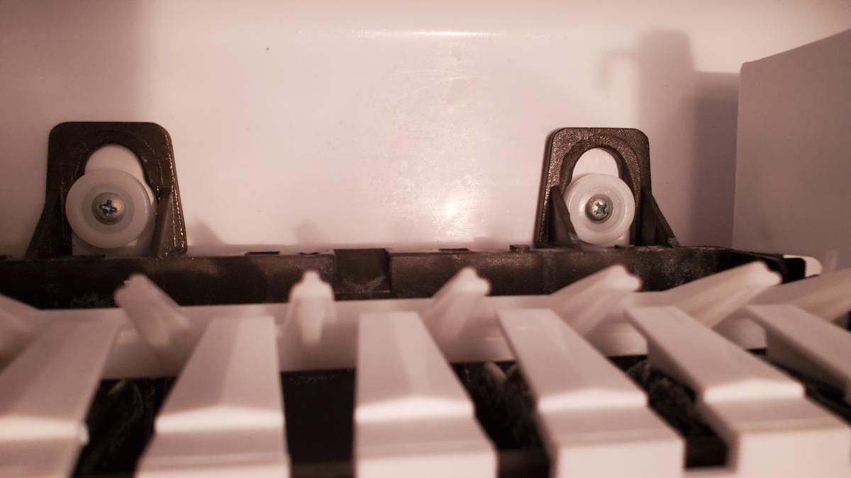 If you would like to repair the ice maker, you need to expose the control board. To do this look in the end of the portion where the motor and control board is. There is a Phillips-head screw there. Remove this screw.